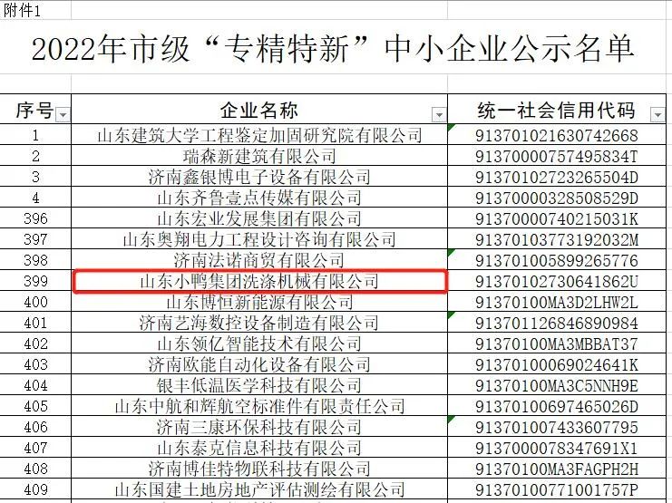 喜報(bào)!小鴨洗滌機(jī)械獲濟(jì)南市2022年市級(jí)“專精特新”企業(yè)榮譽(yù)稱號(hào)